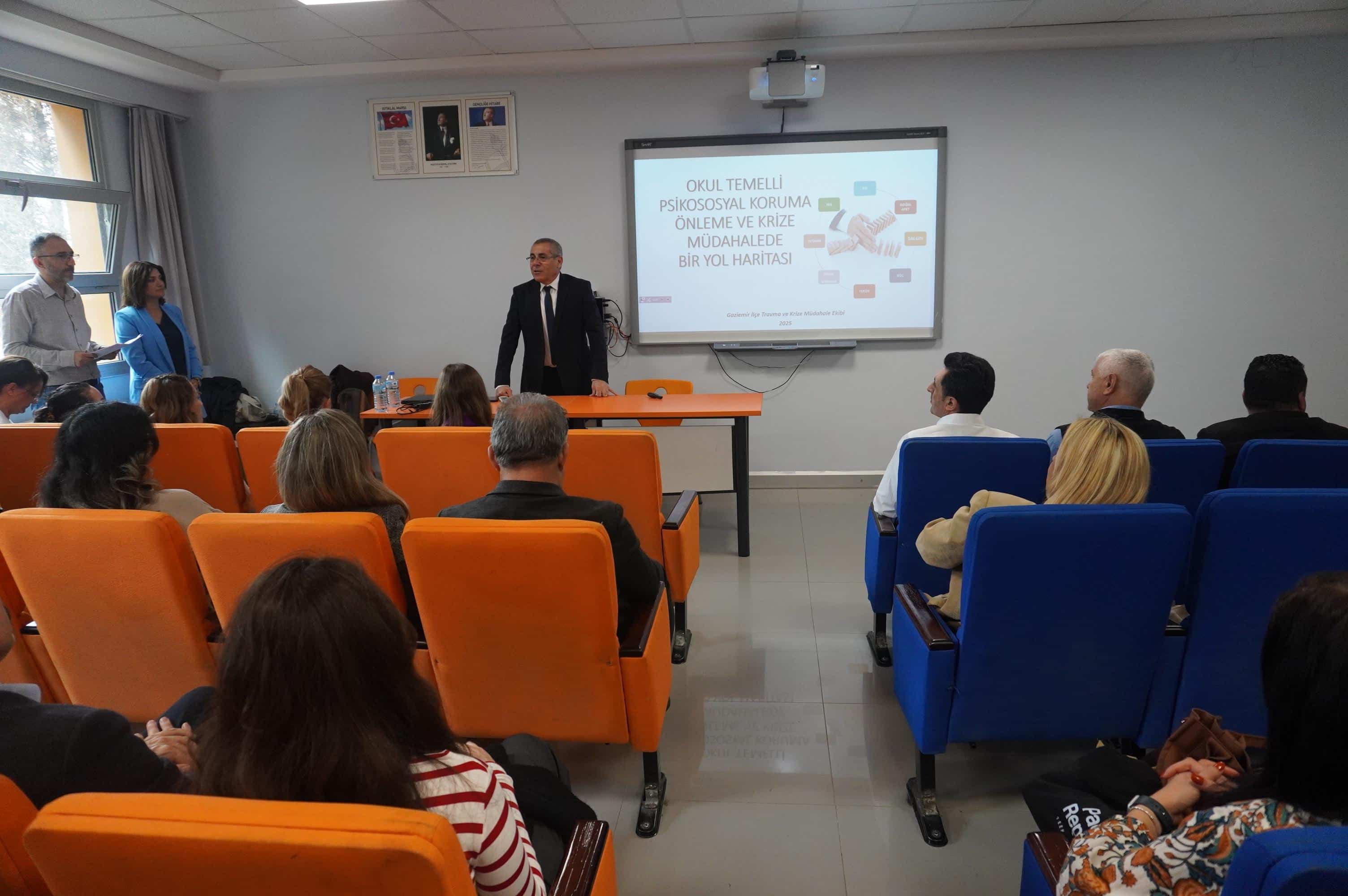 Okul Müdürlerinin psikososyal koruma, önleme ve krize müdahale süreçlerindeki bilgi, farkındalık ve uygulama becerilerini güçlendirmek; kriz durumlarında etkili ve koordineli hareket etmelerine yönelik bilgilendirme yapıldı.